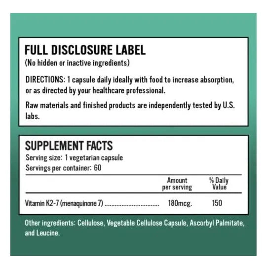 1. Dosis científicamente respaldada de 180mcg de vitamina K2 Mk-7 por cápsula 😊