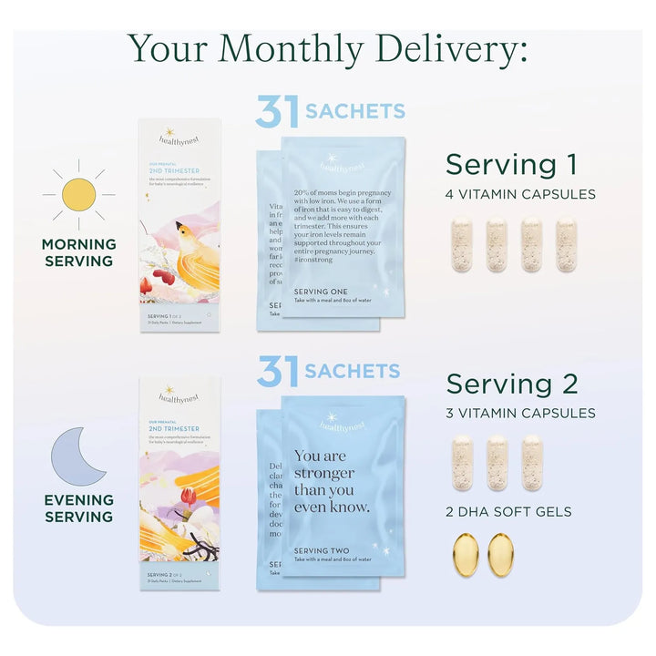- 💖 Nutrición personalizada por trimestre: 27 nutrientes ajustados para el segundo trimestre, porque cada etapa del embarazo es única.
