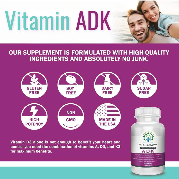 ¿Te preocupa la salud de tus huesos? ¿Sientes que tu sistema inmunológico necesita un impulso? Imagina tener la energía y vitalidad de siempre, con la tranquilidad de saber que estás cuidando tu cuerpo desde adentro. Nuestro suplemento vitamínico ADK está diseñado para brindarte exactamente eso: una fórmula poderosa que trabaja en sinergia para fortalecer tus huesos, apoyar tu corazón y potenciar tu sistema inmunológico.