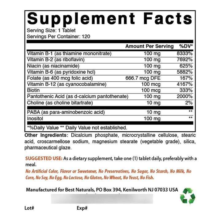 Imagina despertar cada mañana con la vitalidad de un niño, listo para conquistar tus metas. Nuestro Complejo B-100 está formulado con los nutrientes esenciales que tu cuerpo necesita para funcionar al máximo. Sin aditivos artificiales, sin gluten y probado en laboratorios de terceros, garantizamos pureza y calidad en cada tableta. ¡Tu salud es nuestra prioridad!