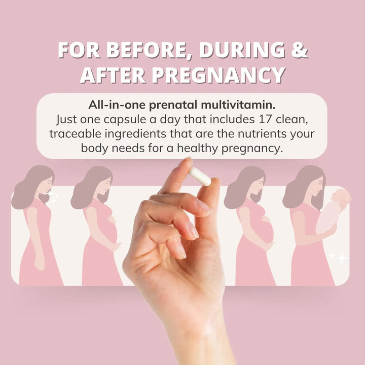 ¿Sabías que durante el embarazo tus necesidades nutricionales aumentan significativamente? Nuestro multivitamínico prenatal no solo cubre esas necesidades, sino que va más allá. Con ácido pantoténico, hierro y una gama completa de vitaminas, este suplemento ayuda a convertir los alimentos en energía, apoya la producción de glóbulos rojos y fortalece los sistemas nervioso y circulatorio de tu bebé. Es la elección inteligente para mamás que quieren lo mejor.