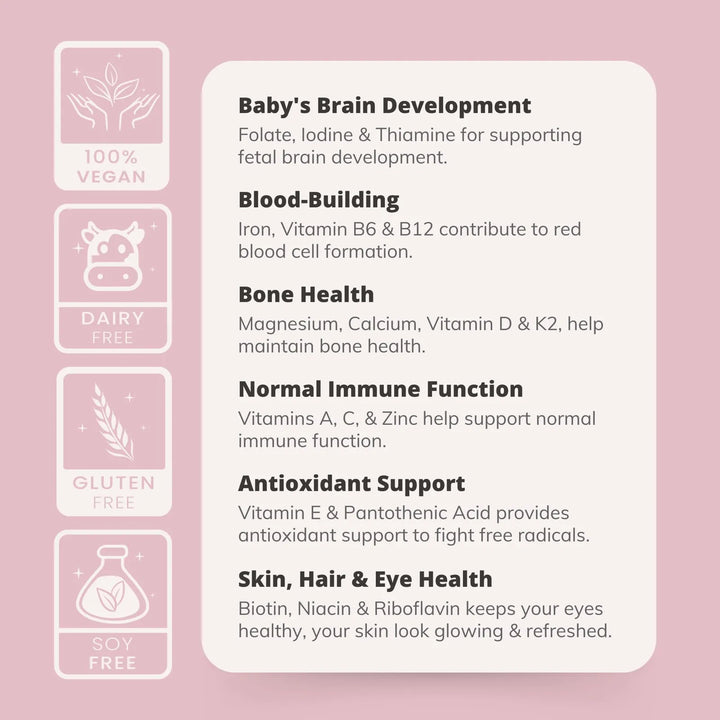 - 🛡️ Protección integral: Refuerza tu sistema inmunológico y el de tu bebé con vitamina C y D.