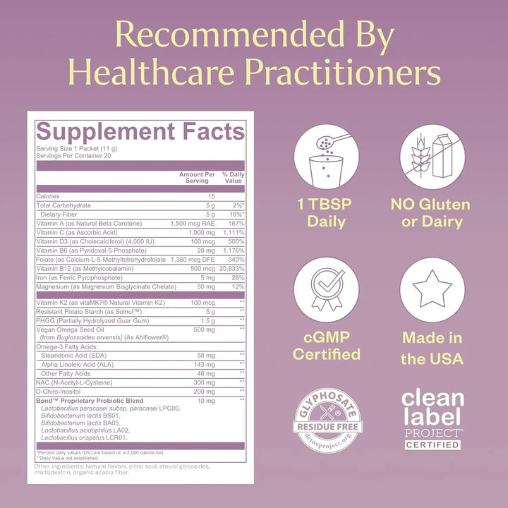 Este producto no solo te brinda nutrientes esenciales, sino que también apoya tu ovulación, ciclos menstruales y sistema reproductivo con ingredientes clínicamente probados. ¿Te preocupa la calidad? Cada componente ha sido seleccionado cuidadosamente y testeado por terceros para garantizar su eficacia. Desde el ácido fólico hasta los probióticos, todo está pensado para que tu cuerpo funcione en armonía.