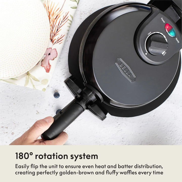 La waflera Bella utiliza un sistema de calentamiento uniforme que se distribuye equitativamente gracias a sus placas giratorias. Al girar el dispositivo, la masa se esparce perfectamente, eliminando burbujas de aire y asegurando un grosor consistente. El control de tostado ajustable te permite seleccionar la intensidad del calor, desde un dorado suave hasta un crujiente intenso, adaptándose a cada tipo de receta.