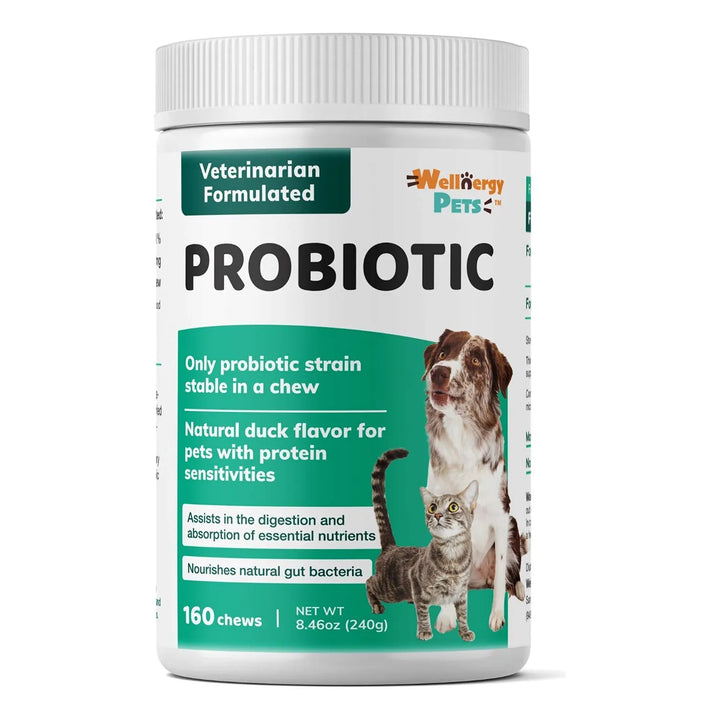 ¿Tu perro o gato sufre de malestar estomacal, diarrea o gases? Imagina poder aliviar su dolor con un suplemento delicioso y fácil de administrar. Wellnergy Probióticos Masticables no solo mejora su digestión, sino que también fortalece su sistema inmunológico, dándole una vida más saludable y feliz. Diseñado por veterinarios, este producto es la solución que estabas buscando.